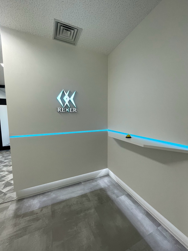 サインのサイズ感や発光の雰囲気、カウンター形状やクロスの質感等、お客様と入念にお打ち合わせをしながら、会社の顔になるエントランスの造作を仕上げさせて頂きました。