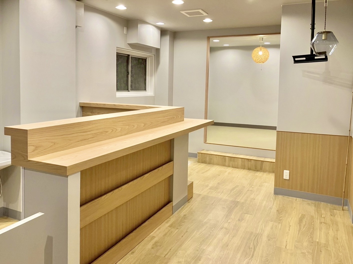 表装はグレー×木目で温かみのある空間にいたしました。